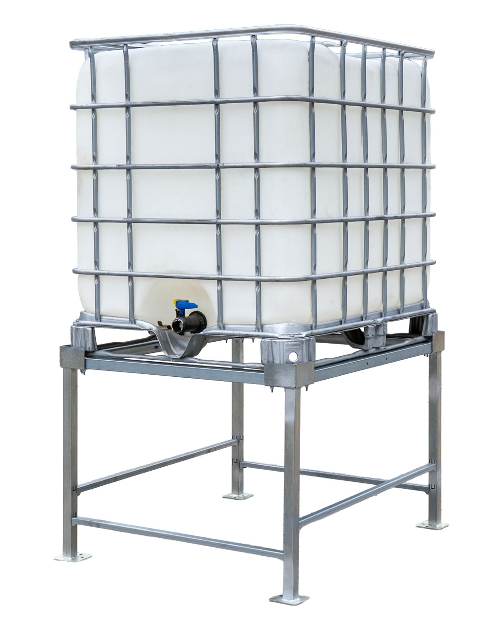 Stojak wykonany z ocynkowanej stali, odpornej na korozję, uszkodzenia mechaniczne oraz warunki atmosferyczne. Gwarantuje stabilność nawet przy pełnym zbiorniku.